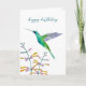 Birthday card featuring a hand-painted watercolor Mexican Violetear hummingbird and flowers. The inside is left empty for your own handwritten message.