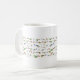 Många bilder av små smällfåglar slår in detta rena vita mugg.