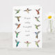 Blanka hälsningskort för tillfällen med handmålade nordamerikanska matfåglar som Anna's, Allens, Rufous, Lila-krönt, Broad-billed, Broad-tailed och Ruby-throated Hummingbird och citatet "Tiden för att se på matfåglar är aldrig slösat."