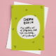 Texten på framsidan av kortet lyder “kemoteraphjärna, den subtila konsten att glömma vad man gör, medan man gör det”