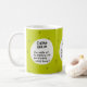 Texten på koppen lyder ”kemoterapihjärna, den subtila konsten att glömma vad man gör medan man gör det”
