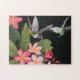 I Plumeria, vid Grace Popp. Två hummingfåglar florerar runt tropiska rosa blommor. | 140388GG