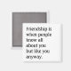 "Vänskapen är när folk vet allt om dig men som du ändå." Humoristisk och sann!