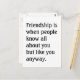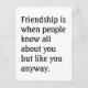 "Vänskapen är när folk vet allt om dig men som du ändå." Humoristisk och sann!