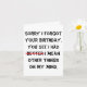 humoristisk senkommen födelsedag kort