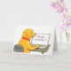 Humorous dog greeting card featuring the golden goodog at a computer searching “who’s a goodog?” Perfect for dog lovers who appreciate clever humor, minimalist art, and everyday smiles.