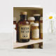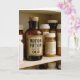An old medicine bottle with a humorous label for seniors, placed in a medicine cabinet.