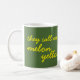 Humoristisk Baby Boomer Mugg Melon - melon gult - Uppfräschning, snyggt design, "de kallar mig melon gult" mugg. Det går bra med en elbanan, som plötsligt blir en galning. Humoriserad, tunga på den fuskade baby boomer mugg. - copyright 2015