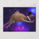 Lustigt kamel som hoppar in i nya år kväll genom de färgstarka fyrverkerierna