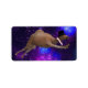 Lustigt kamel som hoppar in i nya år kväll genom de färgstarka fyrverkerierna