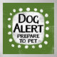 En irreversibel och söt typografisk djurdesign som säger "Hund Alert, Preparera till sällskapsdjur". Den har svart och röd text på en vit rektangel med funky, lekfulla vita prickar runt den, allt på en grått-bakgrund.