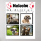Fira din bästa vän med en anpassningsbar Photo Collage poster. När du har så många roligtar och foton räcker det inte med ett foto. Den här poster innehåller 4 foton, ett citattecken, och du kan anpassa namn på ditt sällskapsdjur. Du kan också ändra färg i tabbutskriften. Om du vill anpassa kan du ändra färg och teckensnitt, ange ett eget citat och ladda upp egna foton eller till och med ändra färg i bakgrunden. Oavsett om du har en ny valp, eller bara vill memorera alla dina speciella stunder, förtjänar varje hund en personlig familjepaket.