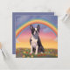 Ett personlig Boston Terrier-sympatikort med en vacker målning av en Boston Terrier på himmelska backe med ett vackert regnbåge. Symboliseringen av Boston Terrier-hund har passerat regnbågsbron till himmelriket. Du kan anpassa den med din egen Boston Terrier hund's namn eller någon annan text på baksidan av kortet. Gör en speciell minnesstund eller sympatigåva till Boston Terrier hund älskare om deras kära hund har passerat.