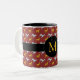 Anpassade 2-tonsfärgad mugg med blå och gult hundar mönster på mörk röd bakgrund + svart märkre för Monogram framtill. Du kan enkelt ändra monogram och lägga till text (teckensnitt, färg, storlek och placering) genom att klicka på knappen Anpassa. Matchande pitcher, trasa-napkin, bordstablett och många andra produkter... Perfekt för kinesiska nyåret i Hund 2018 eller födelsedagen (människor födda i Hund år).