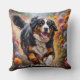 Söt Bernese Mountain Hund ser så lycklig ut som springa genom söt blommor.