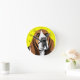 Basset Hound med ledsen öga på en gult bakgrund som kan anpassas, färg på klocknummer och punkter kan också ändras
