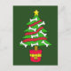En söt tecknad Julgran täckt med röda tinsel och hund ben. Bilden har en mörk grönt bakgrund.