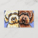 Originalgrädde och choklad Labradoodle teckning och affärskort av sällskapsdjur av Andie of Off-Leash Art. Artistisk layout i ljusblå och canvas struktur för Labradoodle-uppfödare, show handlers, rasentusiaster, telefonkort och rädding organisationer. Anpassade.