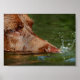 Stäng makronofoto av Belly chokladblandningen Labrador Pittie hund - Författare till "Äventyr of Belly" - Swimming and blowing nosbubbles