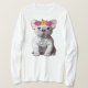 Cute Fransk Bulldog med en hund-cuddles citerar som en långärmad T-skjorta för henne. Den söta hund har blommor på huvudet. Tack vare Kreativet Fabrica för inslag i designen.