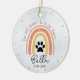 Fira livet för en älskad familjedjur med denna fina keramiska prydnad med regnbåge för hund eller katt. Med ett lekfullt regnbågstema och ömtåliga tassavtryck är denna prydnad en söt och hjärtlig hyllning till en älskad lurvig vän. Perfekt för att hedra en hund eller katt som alltid kommer att ha en särskild plats i ditt hjärta, ger den ett ljust och kärleksfullt tillskott till din julgran. Personifiera den med ditt husdjurs namn eller år för att skapa en minnessak som bevarar deras minne i många kommande högtider.