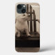 © Jim Dratfield / Vild Apple. Vintage bild har en hund på en stol längs stranden. Vinden blåser mot hund ansikte, som verkar njuta av landskapet.