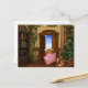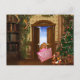 Golden-hämtaren kommer in i luckan med sitt julkort shopping bag-redo för att placera det under träd med andra hundälskare-vykort för helgdag
