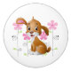Den här keramiska skåpet visas i vitt med en söt hund och rosa blommor. Anpassa det här objektet eller köp som det är.