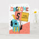 Det här är ett roligt- och färgkort för medarbetare som fyller 5 år och som ger en komisk hund. Hund har enorma glasögon och har ett tecken med sig på vilket det står: " 5 ÅR REDAN!", ovanför vilket står texten: DOGGONE som är skriven i ett illustrerat, färgstarkt teckensnitt. Originalteckningar av Hund och alfabet med Solmiri Art Card-design av Natalie Kinnear
