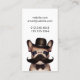 Lustigt och sött, det här hund groomer-affärskortet kommer att fånga någons uppmärksamhet. Med en smart fransk bulldog med en fantastisk mustasch, med bowlareare hatt.