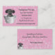 Affärskort för matriser för hund. Lägg märke till ditt företag med denna valp i en bänk med bubblor. Ljus rosa bakgrund med ljus överallt.