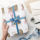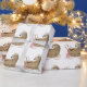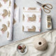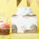 Pudelblandninghund i en gammalmodig vide- barnvagn med en ny ankomst för rosa filthund älskare som slår in papper
