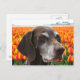 Tysk kortfärgad pekare framför en orange-tulpanpekare i fält