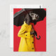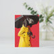 Hund i gultens regnrock - röd bakgrund vykort