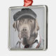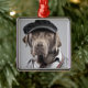 Hund i tröja och lock julgransprydnad metall