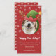 Detta festliga 4x8-hälsningskort är perfekt för alla hundälskare i ditt liv! Med ett vackert foto på en hund med en självhäftande hatt med renar mot en röd bakgrund är det här roligten säkert ett leende för allas ansikte. Fotot kan ändras till ett foto av din egen valp eller mottagarens valp! Bakgrunden har söt vit snöflingor och redigerbar text som säger Lycklig Tass-dagar. Behålla eller redigering av den nedre hälsning-meddelandetexten. Det här personligen är perfekten för att skicka en liten hälsning till barn, vuxnor och alla andra som kärlek hundar. Så beställ ditt julkort i dag! Det är perfekten att skicka dina kära en speciell dogm jul hälsning i julhelg. Finns i traditionellt och digitalt format.