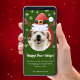 Hund julfoto med Santa Reindeer Hat Digital Julkort