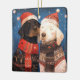 Hund Julsvart och Gul lab vänner Julgransprydnad Keramik