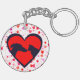 Mörk silhuett av hund och katt i ett rött hjärta på en hjärtbakgrund.