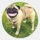 hund leende pug runt klistermärke