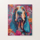 Färgfull teckning av ett Basset Hound.