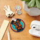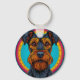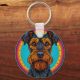 Hund med livfull cirkulär bakgrundsdesign nyckelring