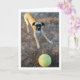 Hund med stor tennisboll välkomstkort. Du kan enkelt anpassa denna produkt gratis om du vill lägga till text eller ändra bakgrundsfärgen.
