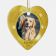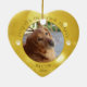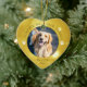 Skapa en kärleksfull, minnesfärgad prydnadsfigur för en älskad hund med titeln FUREVER IN VÅRA HJÄRTOR accentuerad med hund mot en bakgrund och personlig från guld med foto, namn och år på båda sidor. Ta med ett eller två foton. PHOTO TIP: Välj ett foto med subjekt i mitten och/eller före skörd till en kvadratisk form före uppladdning. Kontakta designern via Zazzle-Chattan eller makeitaboutyoustore@gmail.com om du vill att designen ska ändras eller om du vill hjälpa till att överföra den till ett annat stil eller en annan produkt.