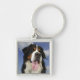Hund närbild fyrkantig silverfärgad nyckelring