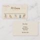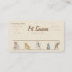 Hund, sitta, veterinärvård, husdjursgromning, alla dessa tjänster och andra husdjurstjänster omfattas av det ursprungliga affärskortet. På framsidan av det djuromsorga kortet visas fem små originalfärger av en vit amerikansk tjur, en brunt med blandad ras, tyska shepherd/labrador kor, en ginger Tom cat och en grått stripy kitten. Anpassadet är att du lägger till all din affärsinformation. På baksidan till det här unika affärskortet finns det mer anpassade för dig att ange mer information för hand för dina kunder om du vill.