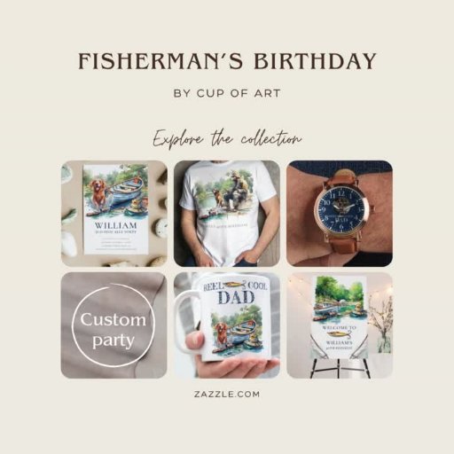 Födelsedagsfestens utformning av vuxen Fishing. Vattenfärgillustration med ljusa färger. Klicka på knappen "anpassa ytterligare" om du vill ordna om och formatera stil och placera texten. Matchande produkt finns i Fågeldagsinsamlingen.