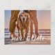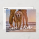 Hund på stranden med par Save the Date Meddelande Vykort