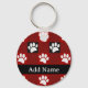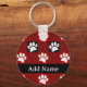 Hund Paw-utskrift, buffel, färgad och röd Nyckelring