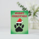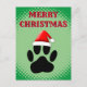 Svartvit på tecknad hund. Anpassningsbarnas helgdagskort under jul. Jultomten, hattversion. Gift-idé för hundälskare.